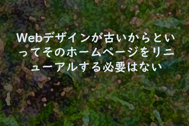 古いホームページは、目的に合わせて「変えられるものは変える。変えたくないものは変えない」ということを実施していけば良い。セキュリティ面の更新やバックグラウンドの仕組みは最新のものにして、基本デザインは同じという形でリニューアルしても良い。